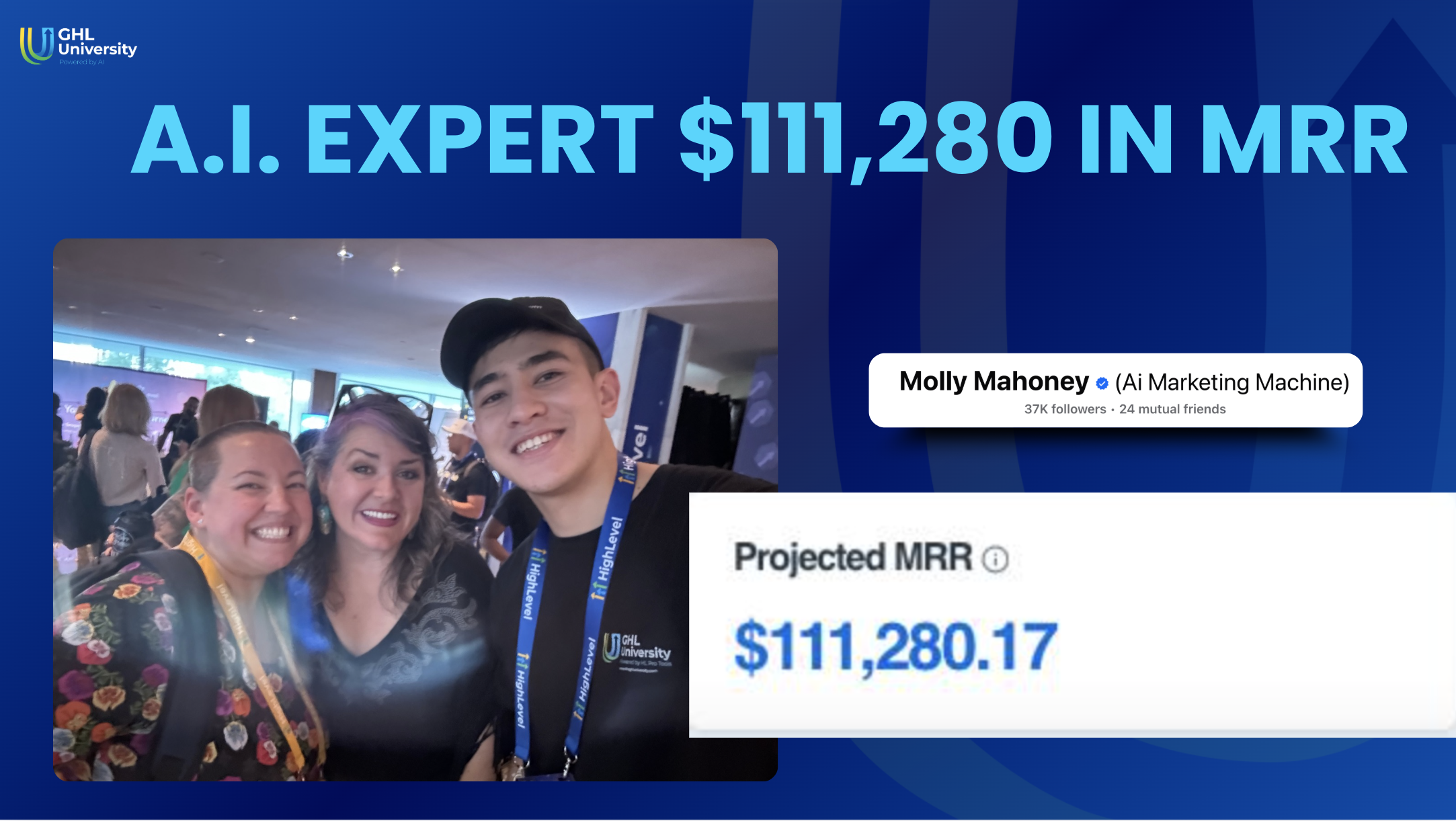 Update: Scaled her A.I. Content agency by licensing our GHL A.I. Training videos, helping a reduce churn & improve retention to the GHL software